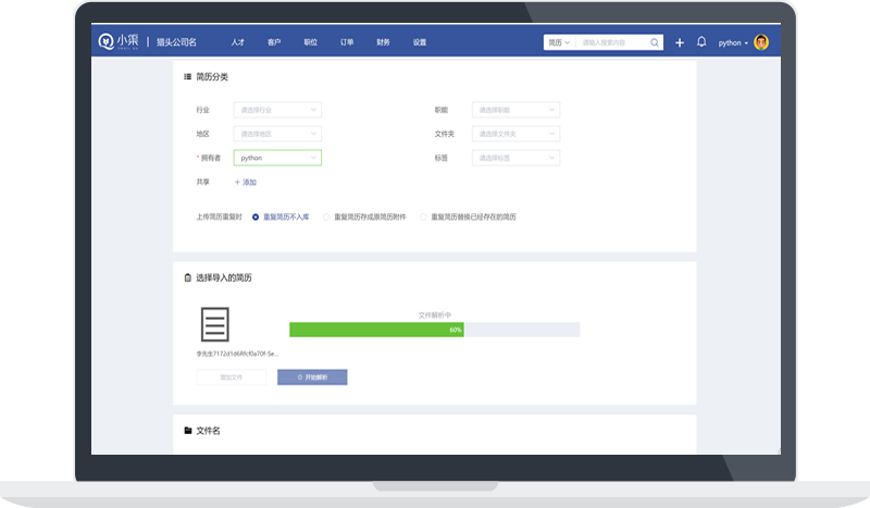 简洁的使用界面清晰的流程管理 熟悉的人才视图